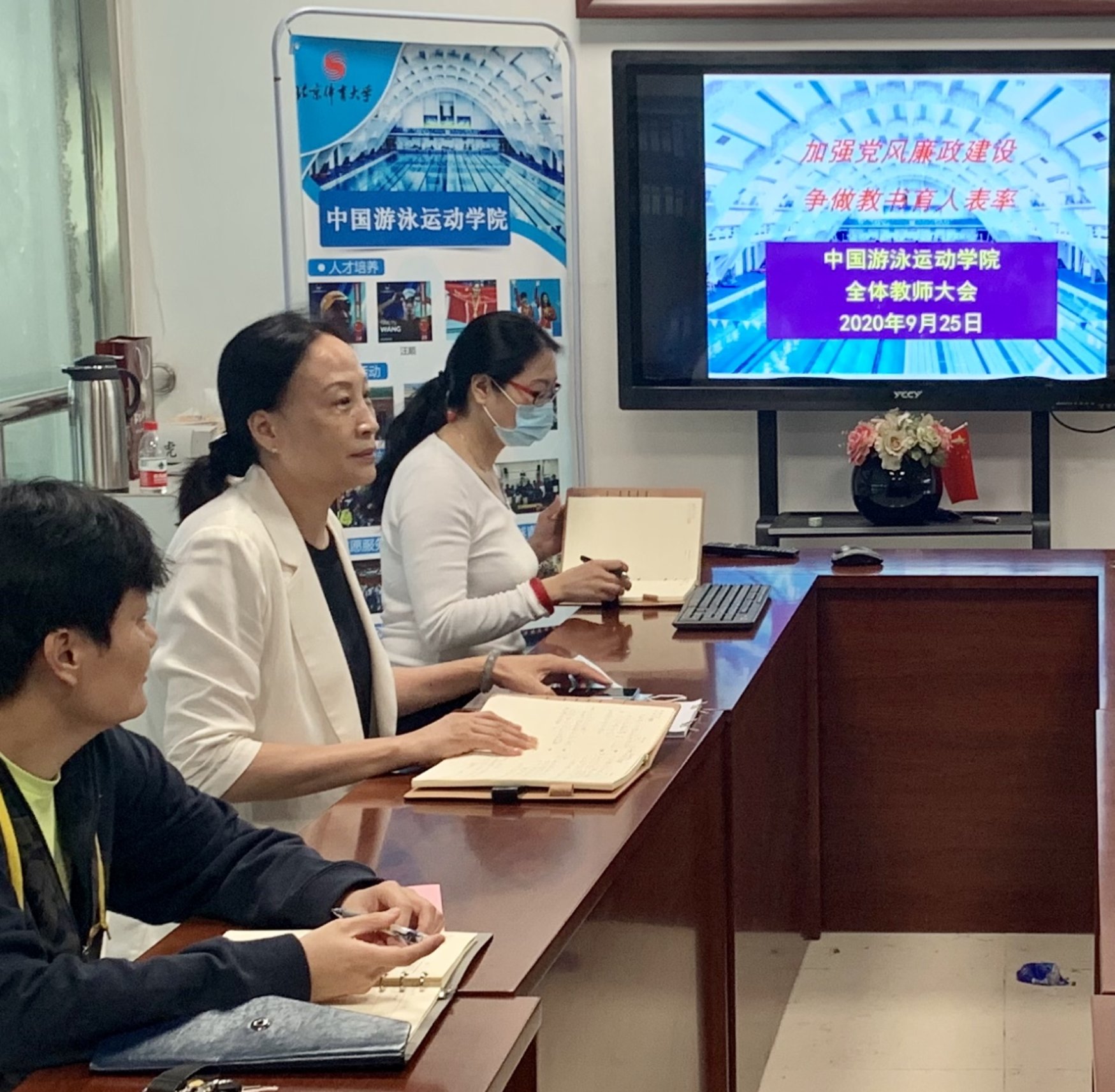 全体教职工参加会议。